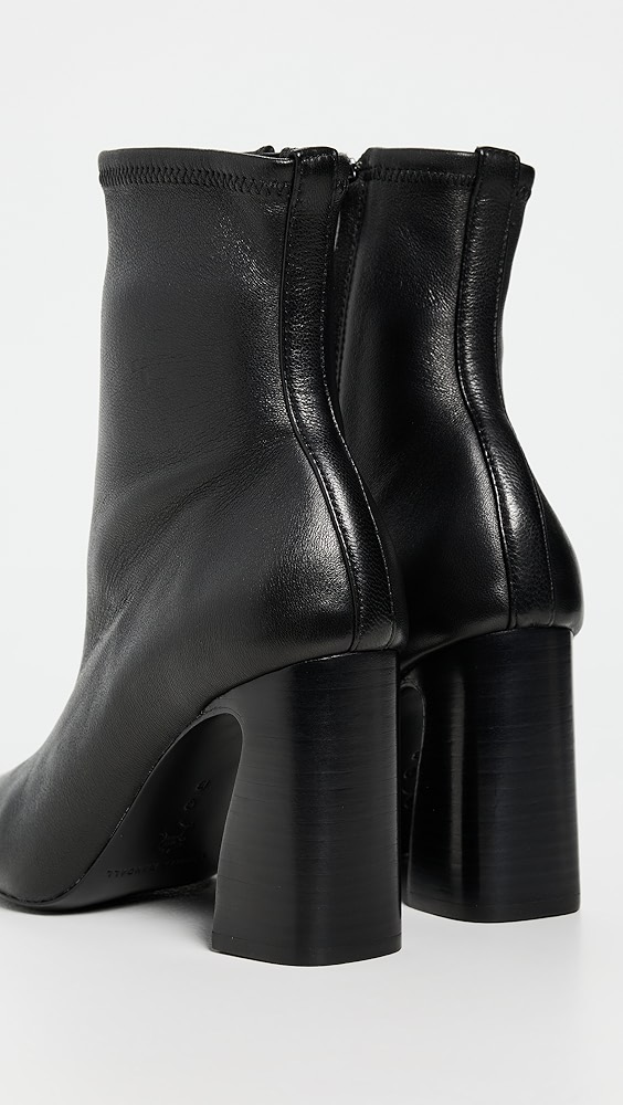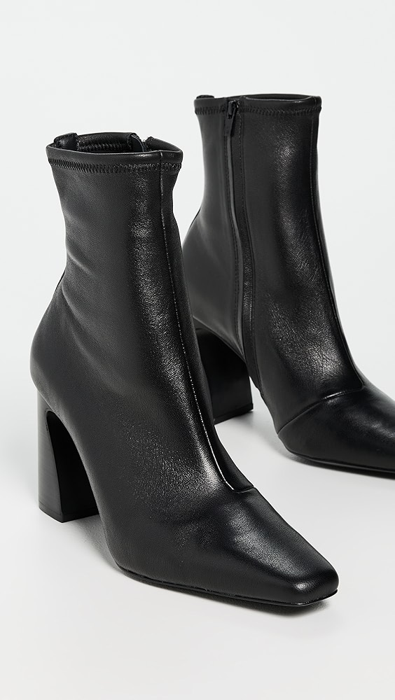Upper: Sheepskin Lining: Leather Block heel Ankle zip Pointed toe Leather sole with rubber heel cap Imported, Vietnam This item cannot be gift-boxed Style #VINCE52974