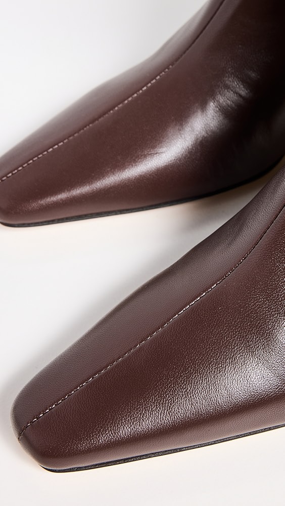 Upper: Sheepskin Lining: Leather Block heel Ankle zip Pointed toe Leather sole with rubber heel cap Imported, Vietnam This item cannot be gift-boxed Style #VINCE52974