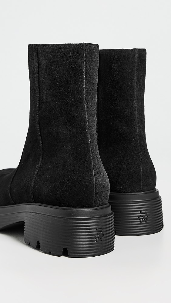 Upper: Leather Leather footbed Lining: Textile Block heel No closure, pull-on design Round toe Rubber sole Made in Spain This item cannot be gift-boxed Style #STUAR21565